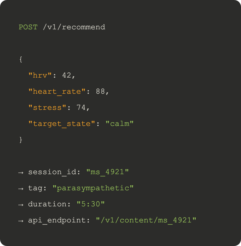 Connect real biometric signals to the right content, at the right moment. Mind Sync translates what your customer wearable data into a personalised path to balance.